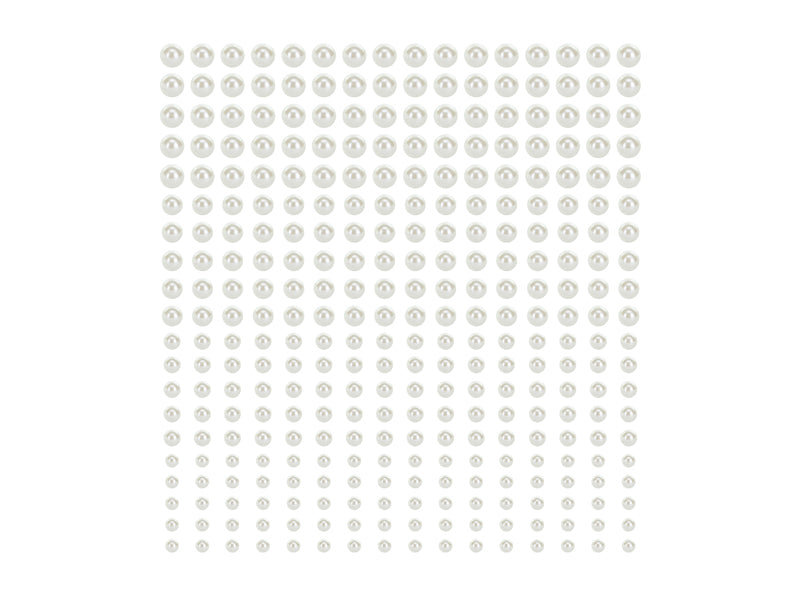 Insgesamt erhältst du 440 Perlenaufkleber in 4 Größen. Der Durchmesser reicht hierbei von 6 mm bis 3 mm. Die eleganten Klebeperlen sind perlmuttfarben.