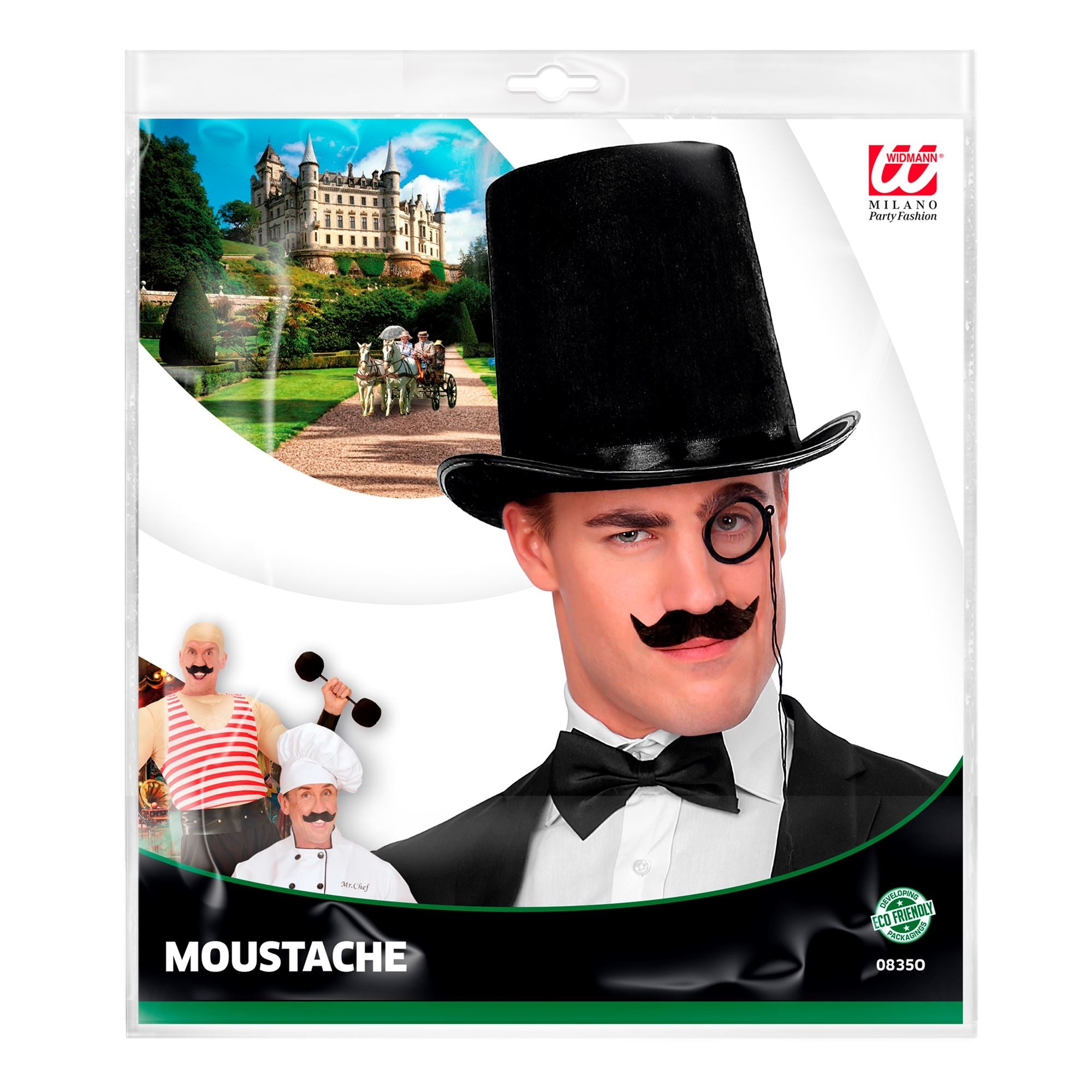 Der Professor William Schnauzer schwarz bietet für viele Anlässe den passenden Bart! Der selbstklebende Schnurrbart ist pechschwarz, 12cm lang und 4cm hoch.
