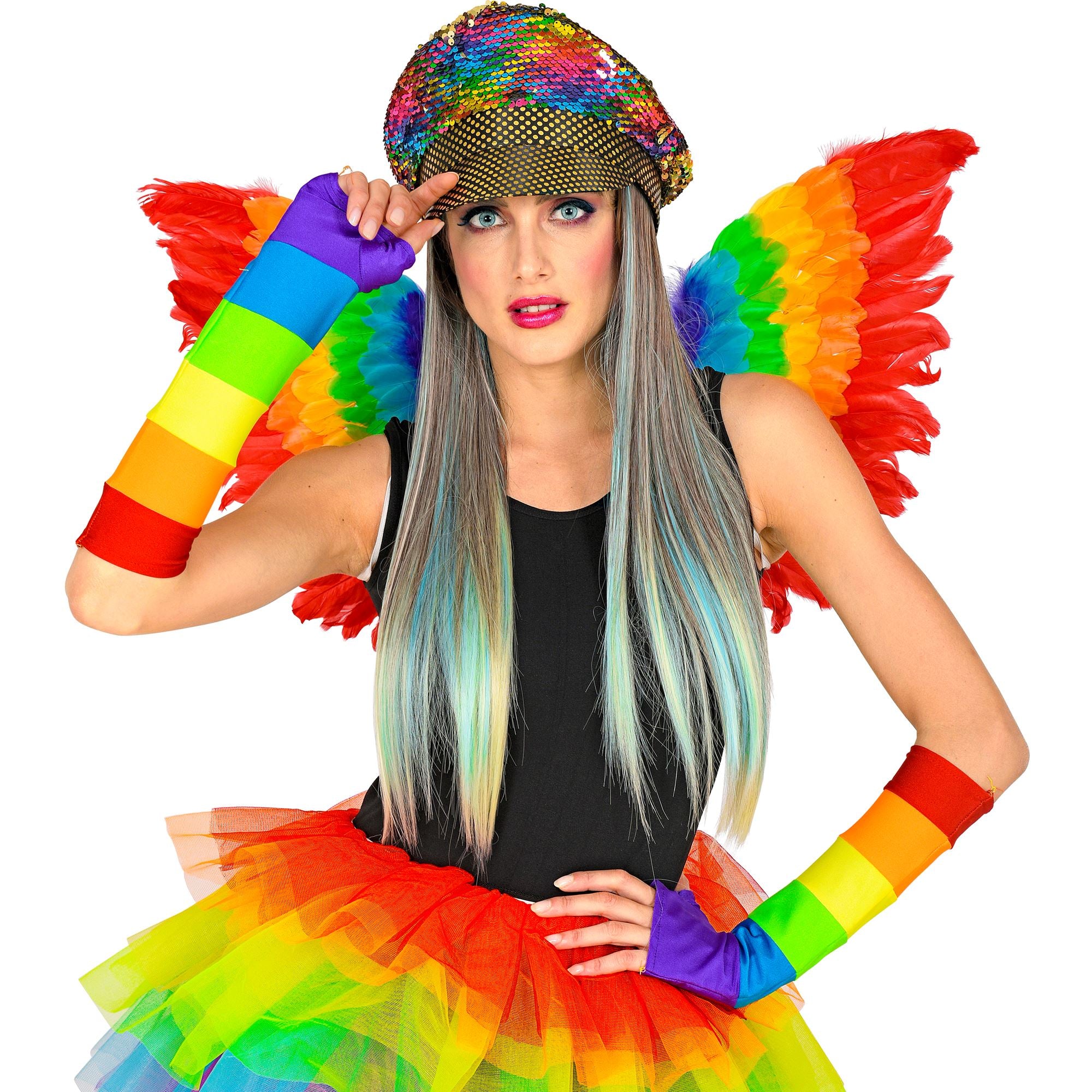 Die farbenfrohe Regenbogen Paillettenmütze mit Haar ist ein tolles Accessoire für viele Gelegenheiten wie zum Beispiel den CSD! Lange bunte Haare sind an der Mütze bereits befestigt und sorgen für einen auffälligen Look, der sofort ins Auge fällt.