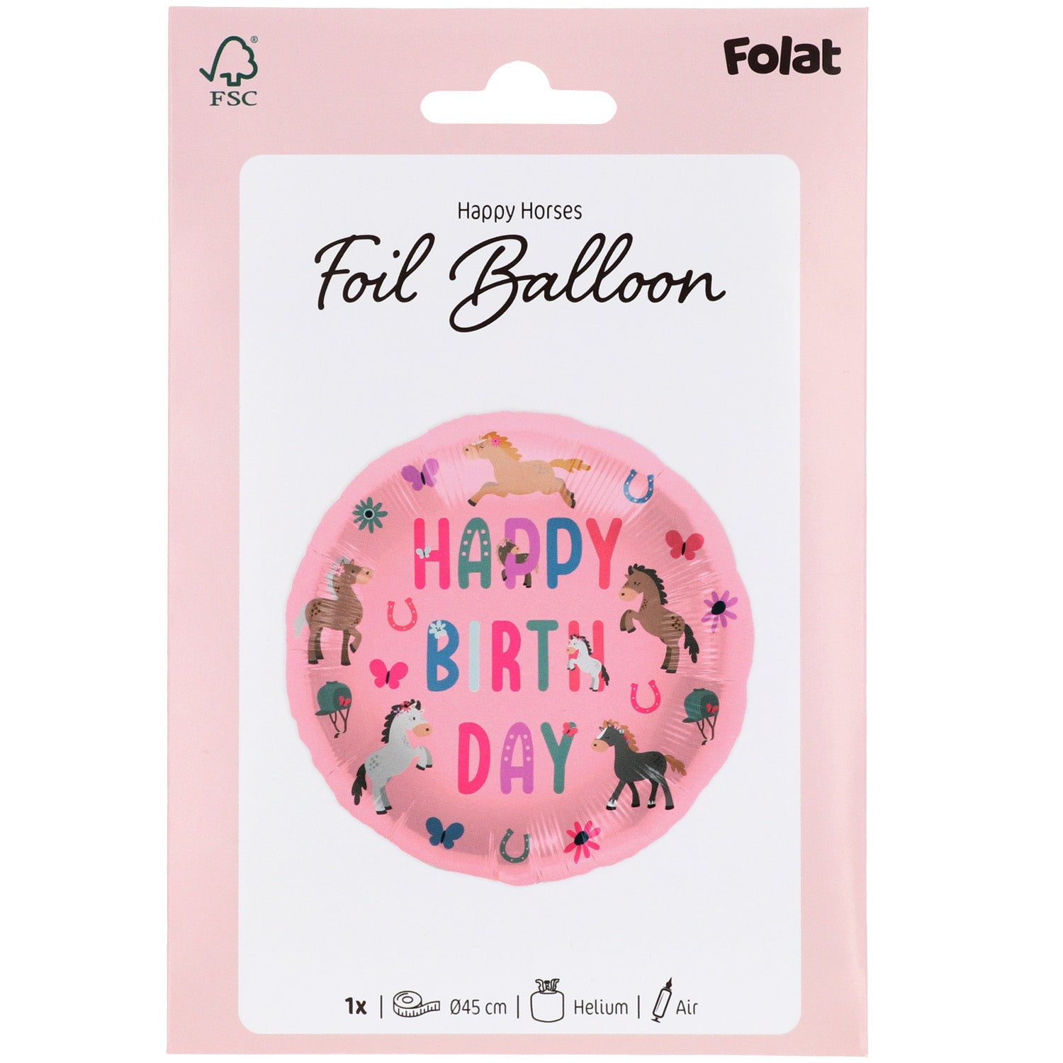 Lass dich von der Magie der Pferde verzaubern mit unserer 'Reiterhof-Freude'-Kollektion! Ob elegante Teller mit anmutigen Pferdemotiven, bunte Becher oder traumhafte Deko - hier dreht sich alles um die majestätischen Vierbeiner. Perfekt für kleine und große Pferdefans, die ihre Liebe zu diesen wunderbaren Tieren auch bei ihrer Geburtstagsfeier zeigen möchten! Im Lieferumfang enthalten ist der mit Luft oder auch Helium zu füllende Reiterhof-Freude Folienballon mit einem Durchmesser von 45cm.