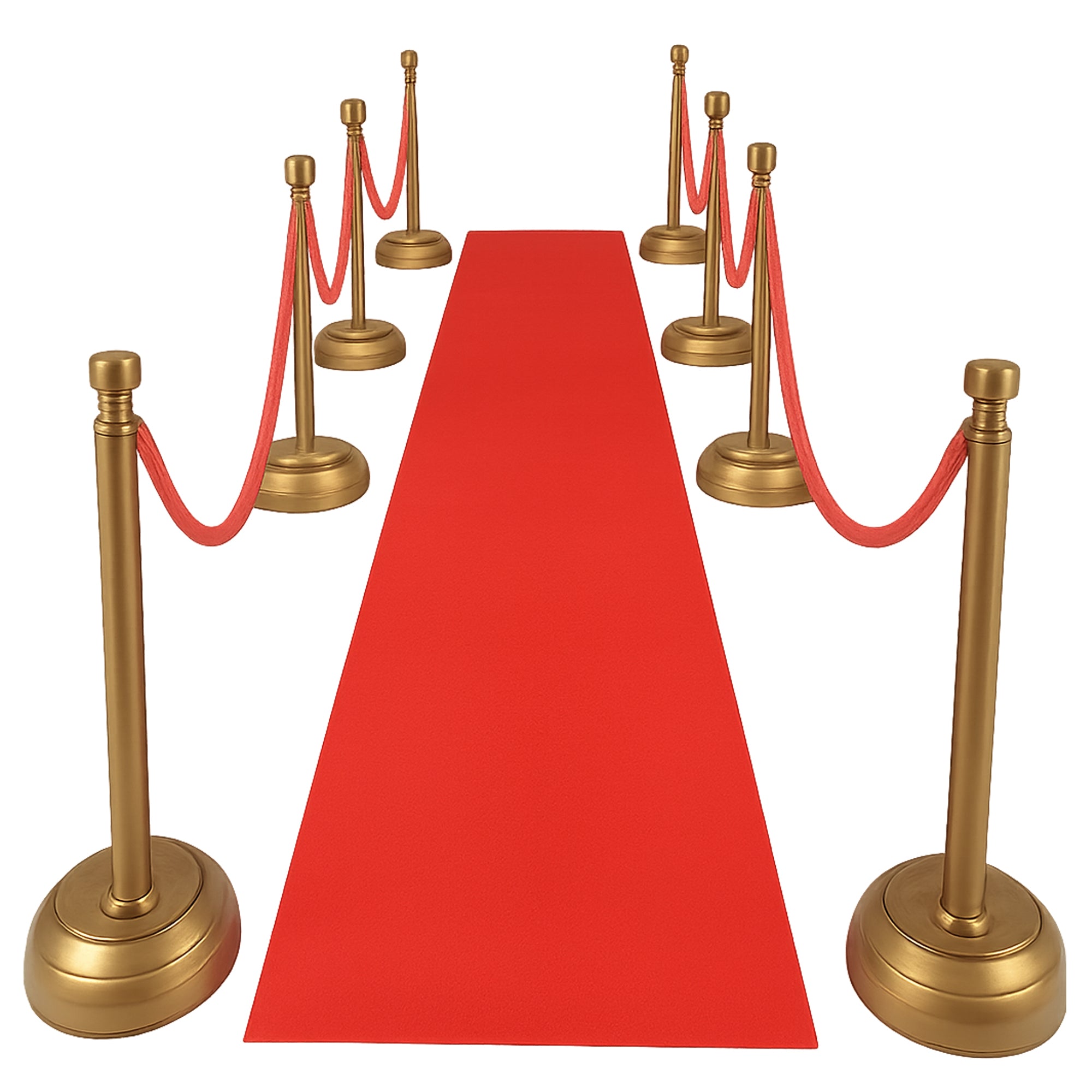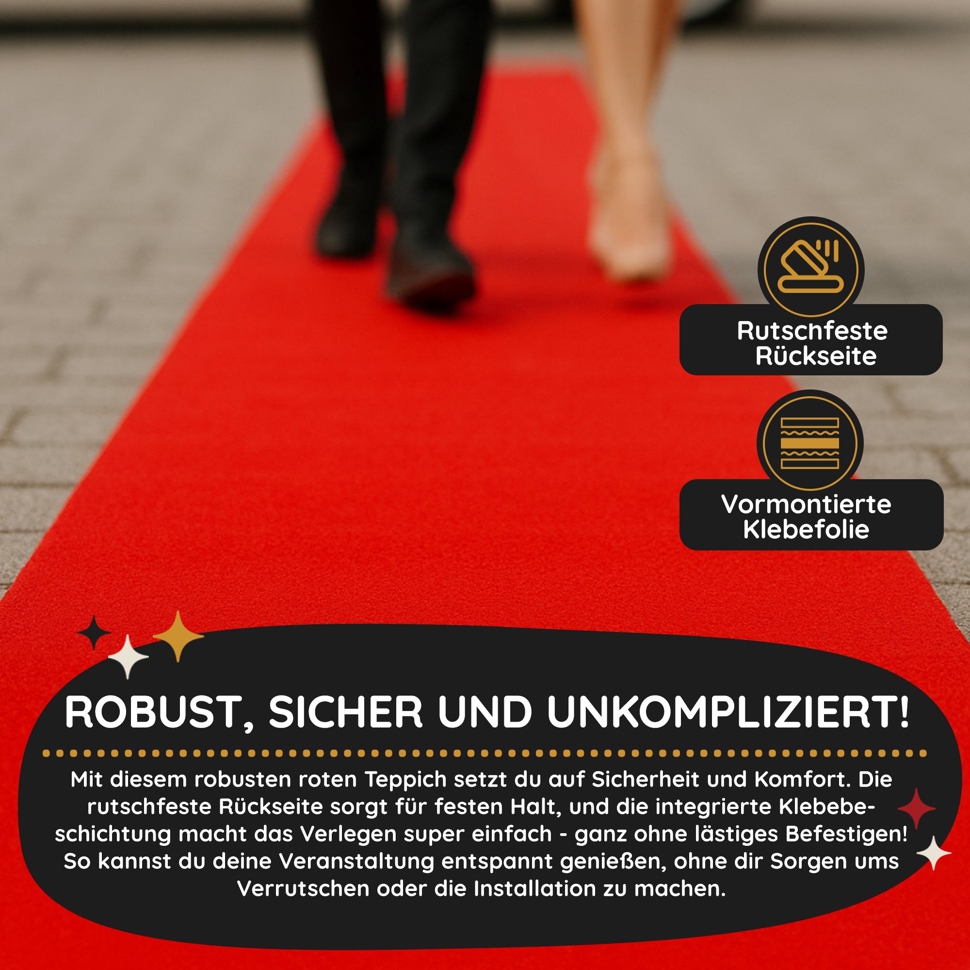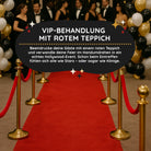 Der Walk of Fame! Mit unserem roten Hollywood Teppich wird jeder Gast zum Prominenten auf einer Gala. Der Teppich hat eine Länge von 4,5m und bietet somit genug Zeit für einen richtigen Walk auf dem roten Teppich. Perfekt für Hochzeiten, JGA's und andere Feste, die etwas mehr Glamour brauchen.