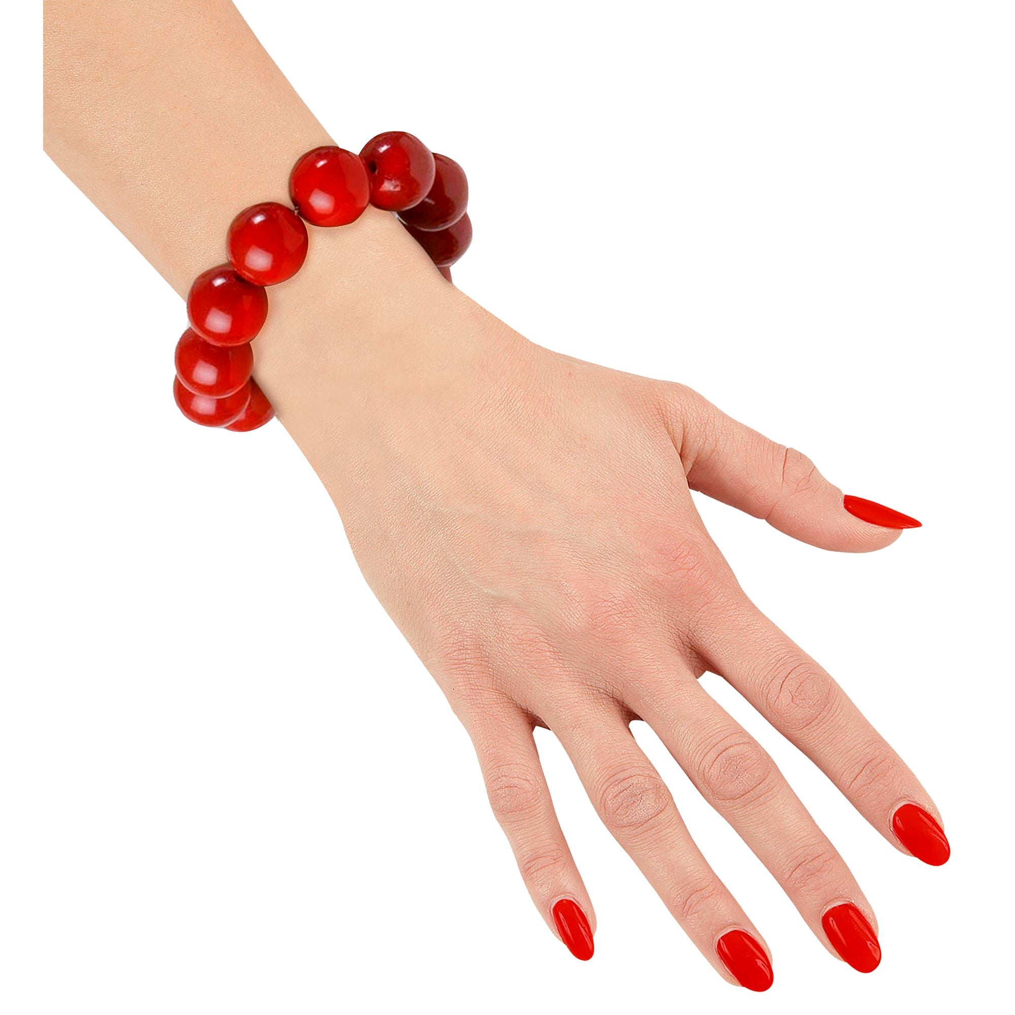 Das rote 70er Jahre Perlen-Armband ist ein fabelhaftes Accessoire für 70er Jahre Mottopartys! Kirschrot und kitschig!