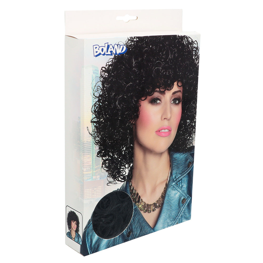 Für einen Retro-Dauerwellen-Look muss niemand mehr zum Friseur rennen! Damen greifen einfach auf die schwarze Lockenpracht Perücke zurück, um sich einen schwungvollen Look mit Ringellöckchen zu zaubern. Die Perücke reicht etwa bis zu den Schultern und eignet sich ideal für 80er Jahre Partys oder den Karneval.