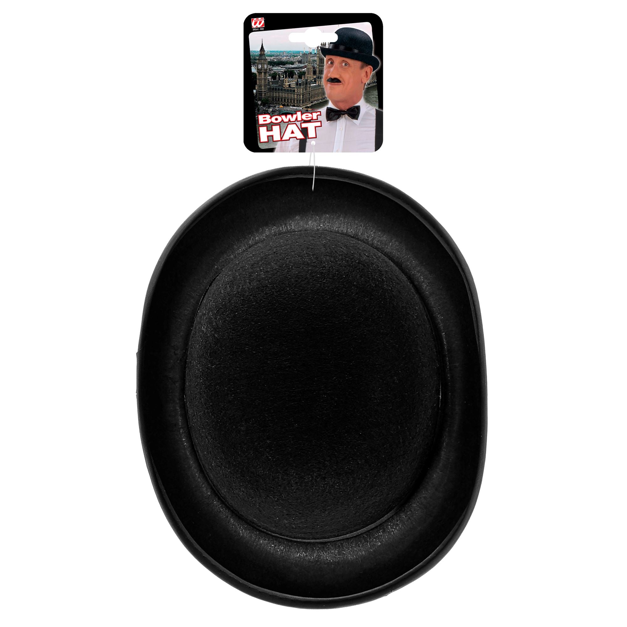 Der schwarze Filz-Melonenhut ist ein beliebtes Accessoire für viele Gelegenheiten!