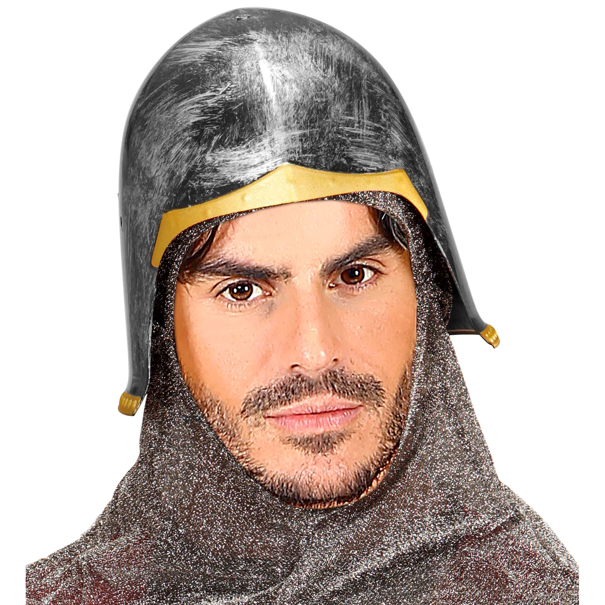 Der silberne Mittelalter Krieger Helm ist ein beliebtes Accessoire für mittelalterliche Kostümierungen! Der grau goldene Helm ist aus Kunststoff.
