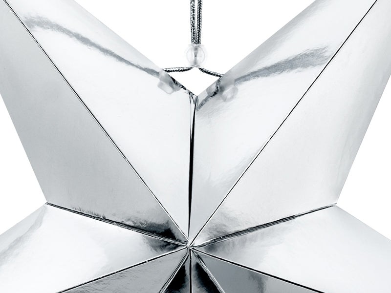 Sag mir wieviel Sternlein stehen.. Der Spiegelnde Papierstern in Silber ist eine tolle Möglichkeit dein Zuhause oder den Weihnachtsbaum festlich zu dekorieren. Mit einer Größe von 70cm ist er von überall gut sichtbar und dank des spiegelnden Materials funkelt er wundervoll im Kerzenschein.