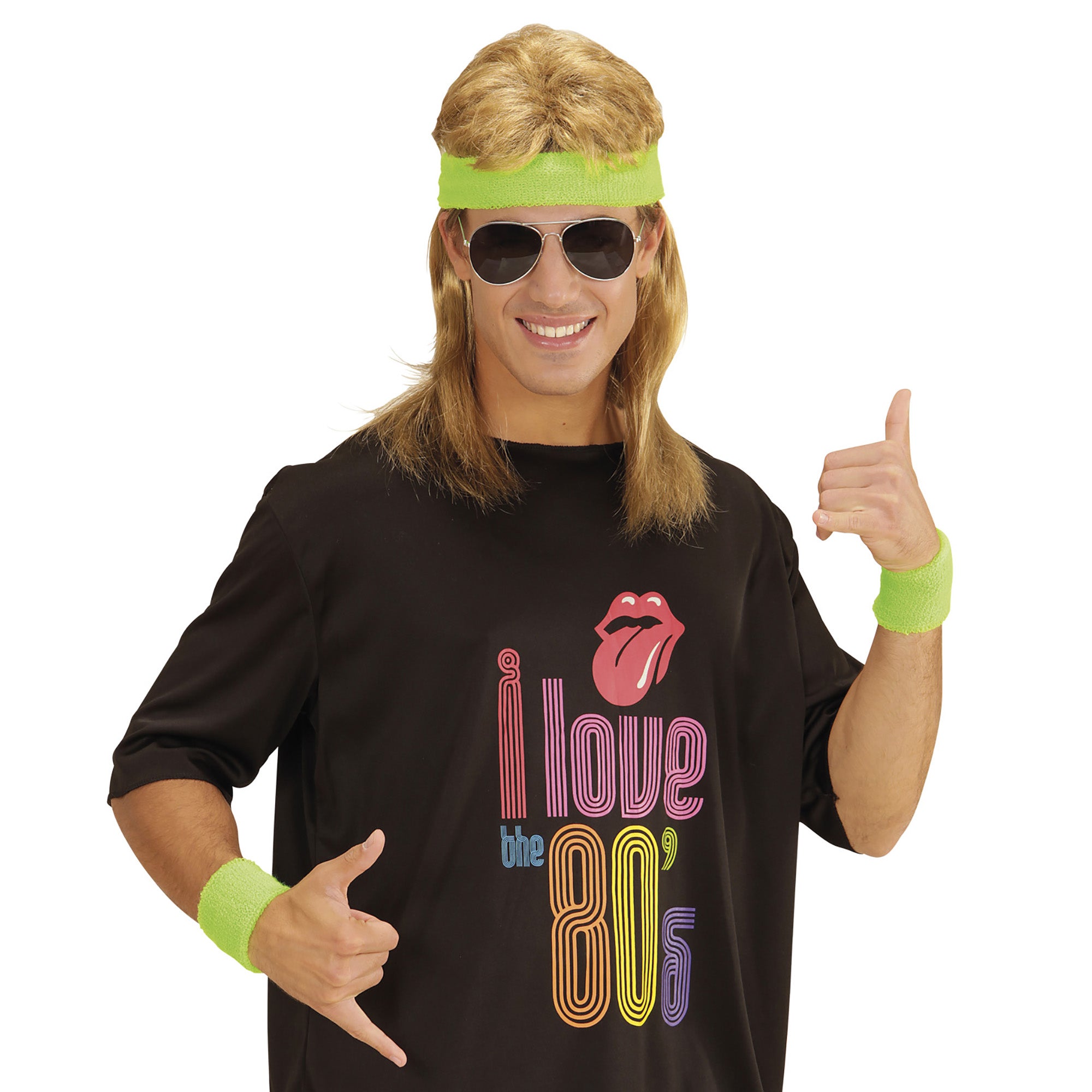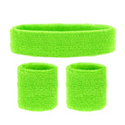 Mit dem Stirnband & Schweißbänder Set in grün bist du bestens ausgestattet für die kommende 80er Jahre Party! Im Set sind 2 Schweißbänder für die Armgelenke sowie ein Stirnband enthalten.