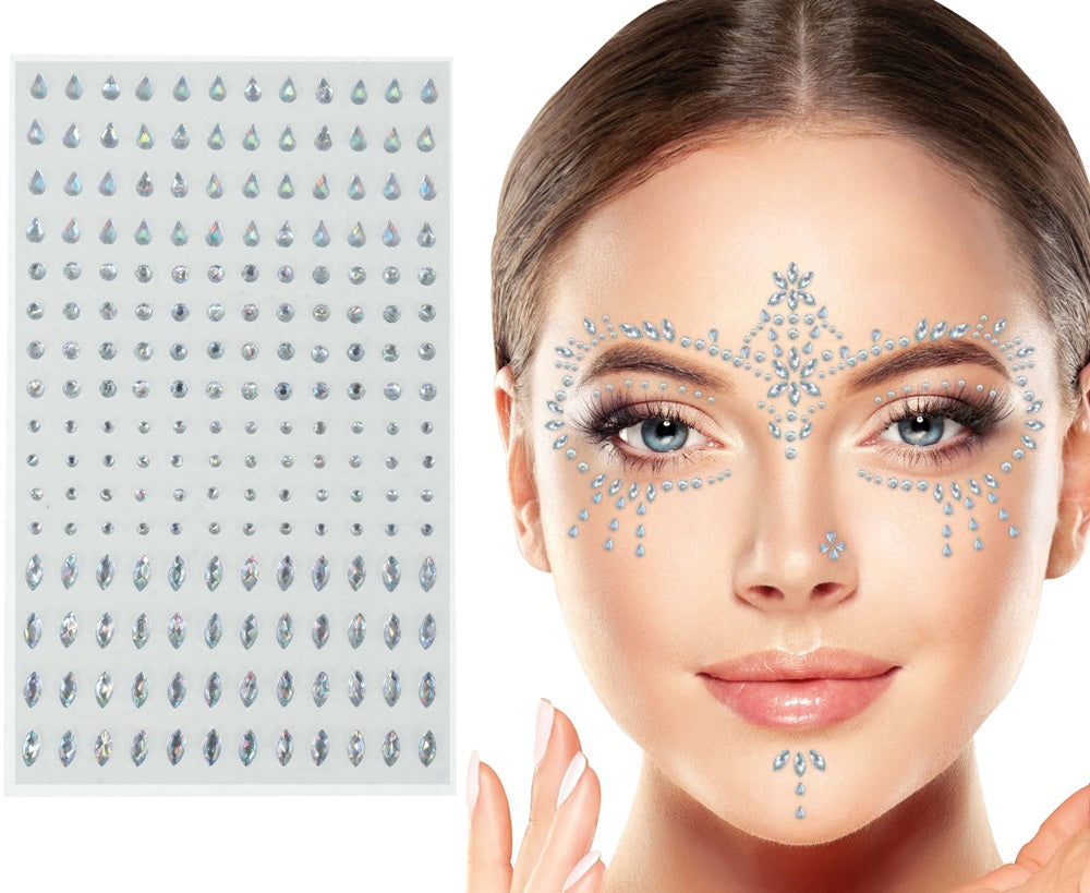 Strasssteine für Gesicht Bogen 10x20 cm