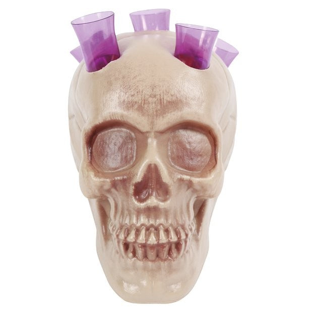 Der Totenkopf Schnapsglas Halter 20cm ist eine tolle Deko für Halloween. Inkl. 5 Schnapsgläser aus Kunststoff.
