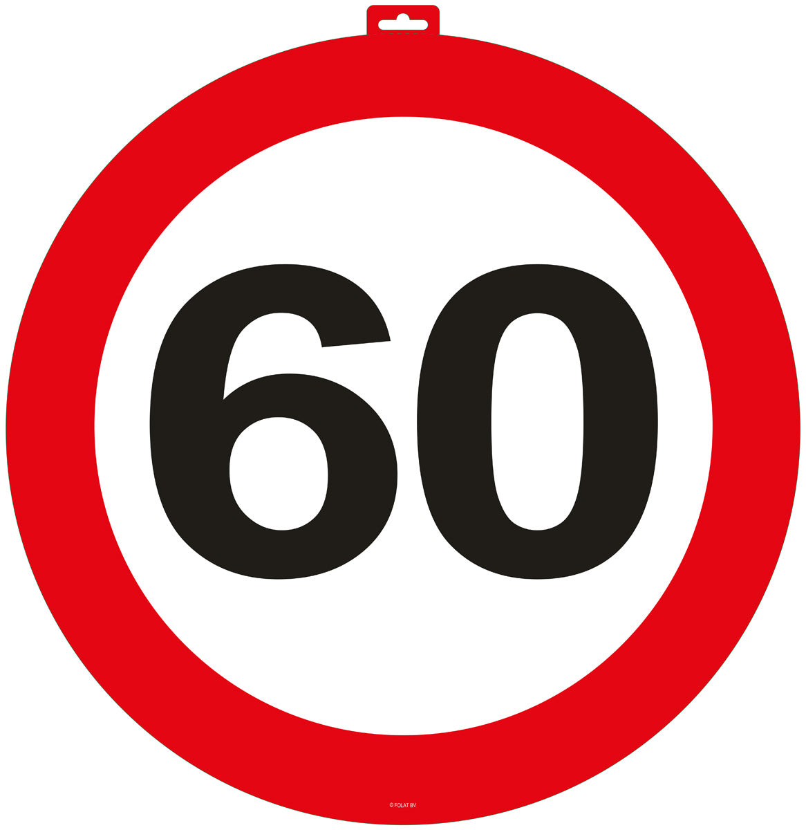 Achtung 60! Mit diesem Verkehrsschild 60 Wandbild 49cm im stylischen Verkehrsschilddesign weiß jeder Gast sofort auf was er sich bei der Zusage eingelassen hat: Einen Abend voll Freude, Spaß und Fun!