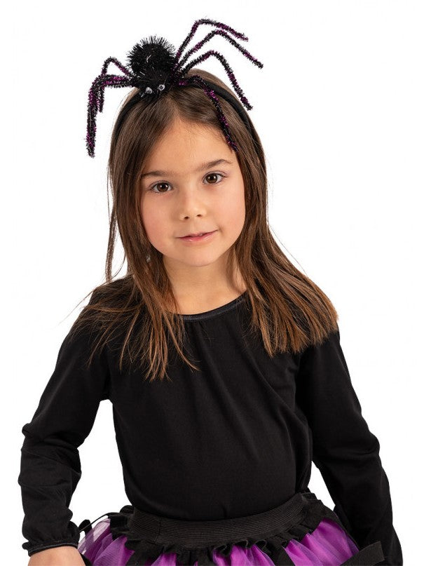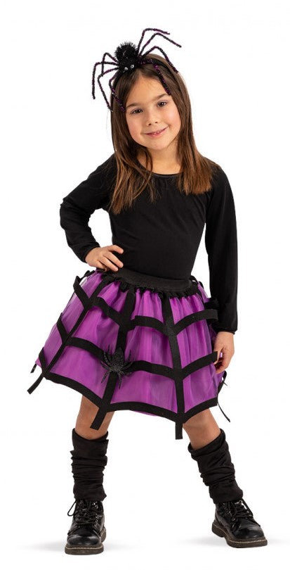 Das Verkleidungsset 2-teilig Kleine lila Spinne besteht aus einem Rock sowie dem passenden Spinnen Haarreif.