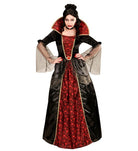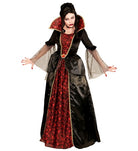 Direkt aus der Gruft in die Halloween Party aufgestiegen! Mit dem Vicky Vampir Damenkostüm Deluxe machst du ordentlich Eindruck. Es besteht aus einem hochwertigen Kleid inklusive Reifrock. Die typischen Farben Schwarz und Rot werden ergänzt durch goldene Borten und transparente Elemente. Ein imposanter Stehkragen rundet den eleganten Look ab.