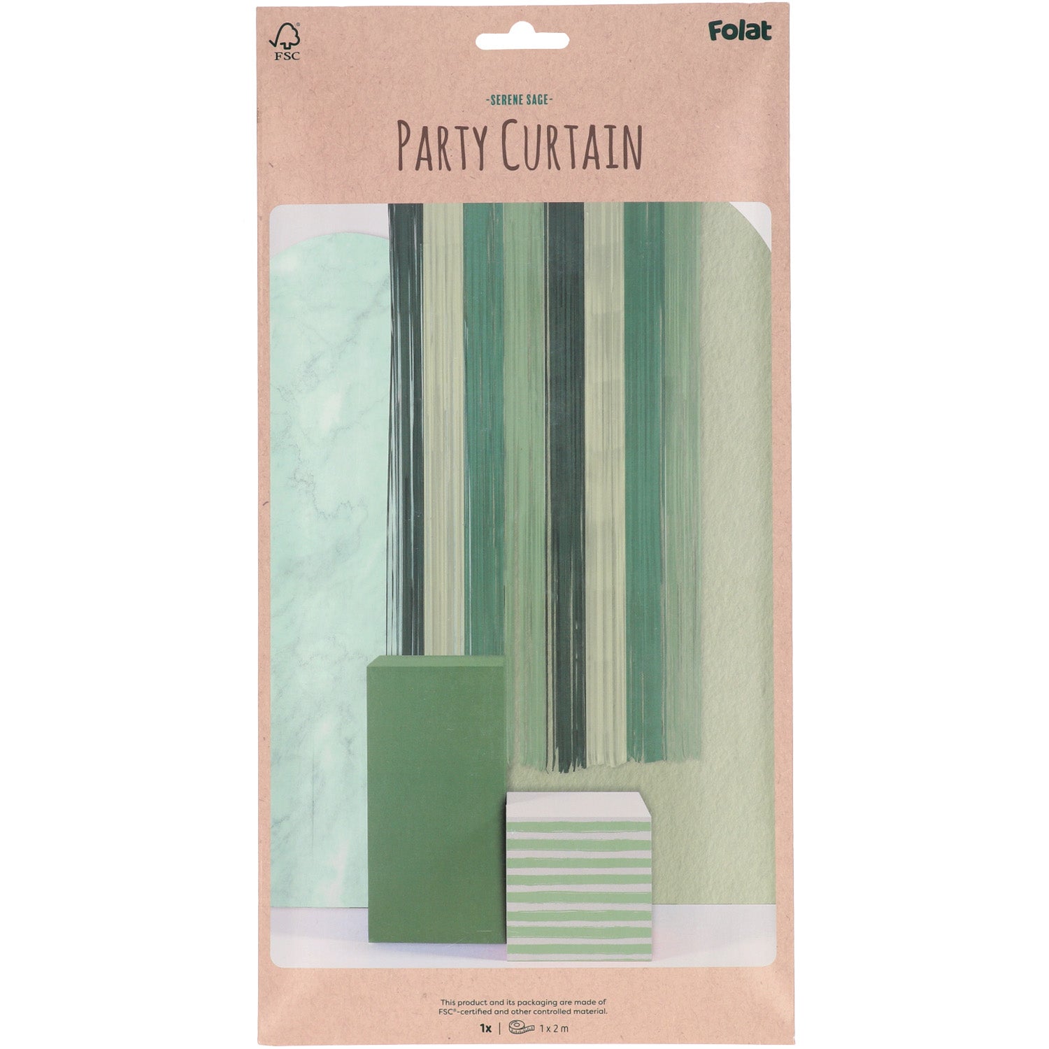 Der Vorhang Lovely Sage mit den 4 unterschiedlichen Grüntönen ist eine fantastische Wahl für jede Veranstaltung, die eine frische, natürliche und beruhigende Atmosphäre erzeugen möchte. Die grünen Farbtöne erinnern an die Natur und verleihen dem Raum eine harmonische und einladende Wirkung. Der hübsche Vorhang ist 2 x 1m lang, beidseitig bedruckt und ist aus Papier gefertigt. Dank der praktischen Klebeleiste lässt er sich ganz leicht anbringen.