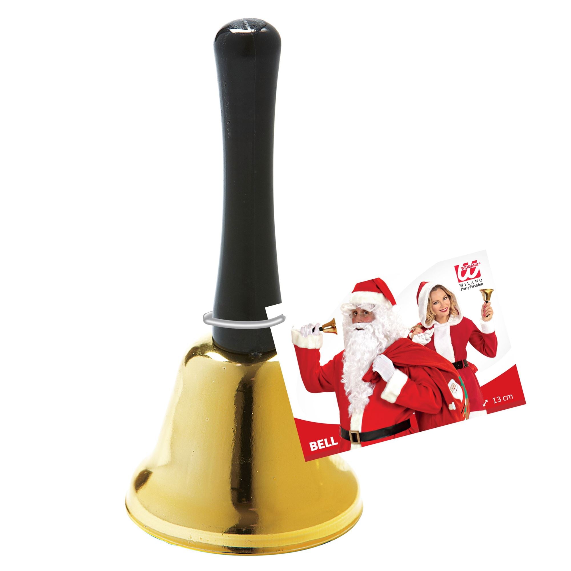 Woher wissen alle, dass der Weihnachtsmann oder Miss Claus die Party betreten haben? Natürlich kündigen sie sich mit der Weihnachtsglocke an! Sie ist in Gold-Schwarz gehalten und passt so perfekt zu weihnachtlichen Kostümen in knalligem Rot. Die niedliche Glocke misst 13cm.