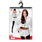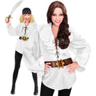 Ahoi Königin der See! Die weiße Piratenbluse für Damen ist in einem edlen Weiß, mit schönen großen Rüschen am Oberkörper und an den Handgelenken gearbeitet. Durch eine Schnürung an der Brust, bekommt die Bluse einen verwegenen Piraten Look.