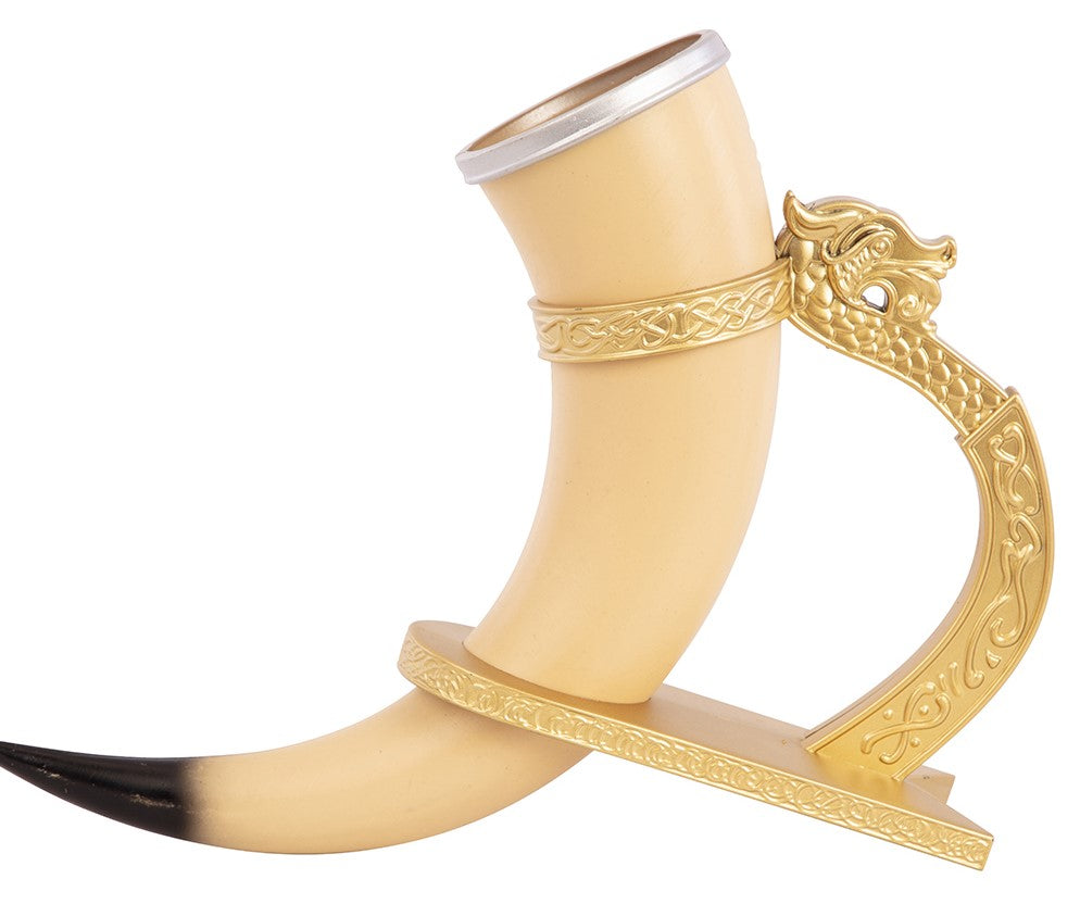 Der Wikingerhorn Trinkbecher ist ein faszinierender Becher mit Getränkehalter, der sofort mit der nordischen Kultur und den legendären Wikingern assoziiert wird. Mit einer Höhe von 23cm bietet er nicht nur eine beeindruckende Größe, sondern auch ein einzigartiges Design, das an die Traditionen und Bräuche der Wikinger erinnert. Perfekt um einen Hauch von nordischer Geschichte in deine Getränkezeremonien zu bringen! Der Wikingerhorn Trinkbecher aus Kunststoff eignet sich hervorragend für festliche Anlässe, Mittelalter-Märkte oder einfach, um beim gemütlichen Beisammensein mit Freunden ein wenig Abenteuergeist zu versprühen. Ob für Met, Bier oder andere Getränke ? dieser Becher ist nicht nur funktional, sondern auch ein tolles Gesprächsthema.