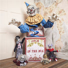 Mit dem XXL Horrorclown Schachtelteufel holst du dir den ultimativen Gruselschocker nach Hause. Die riesige Figur mit einer Höhe von 2,1 Metern steigt aus einer alten, unheimlich wirkenden „Jack in the Box“-Kiste empor – bereit, jedem Besucher einen ordentlichen Schrecken einzujagen!