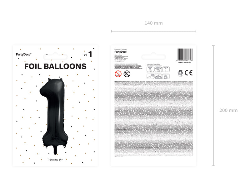 Dieser Zahl 1 Schwarze Zahlenfolienballon kann mit Luft oder mit Helium aufgeblasen werden, misst eine Größe von etwa 86cm und ist perfekte Deko für deine Geburtstagsparty.